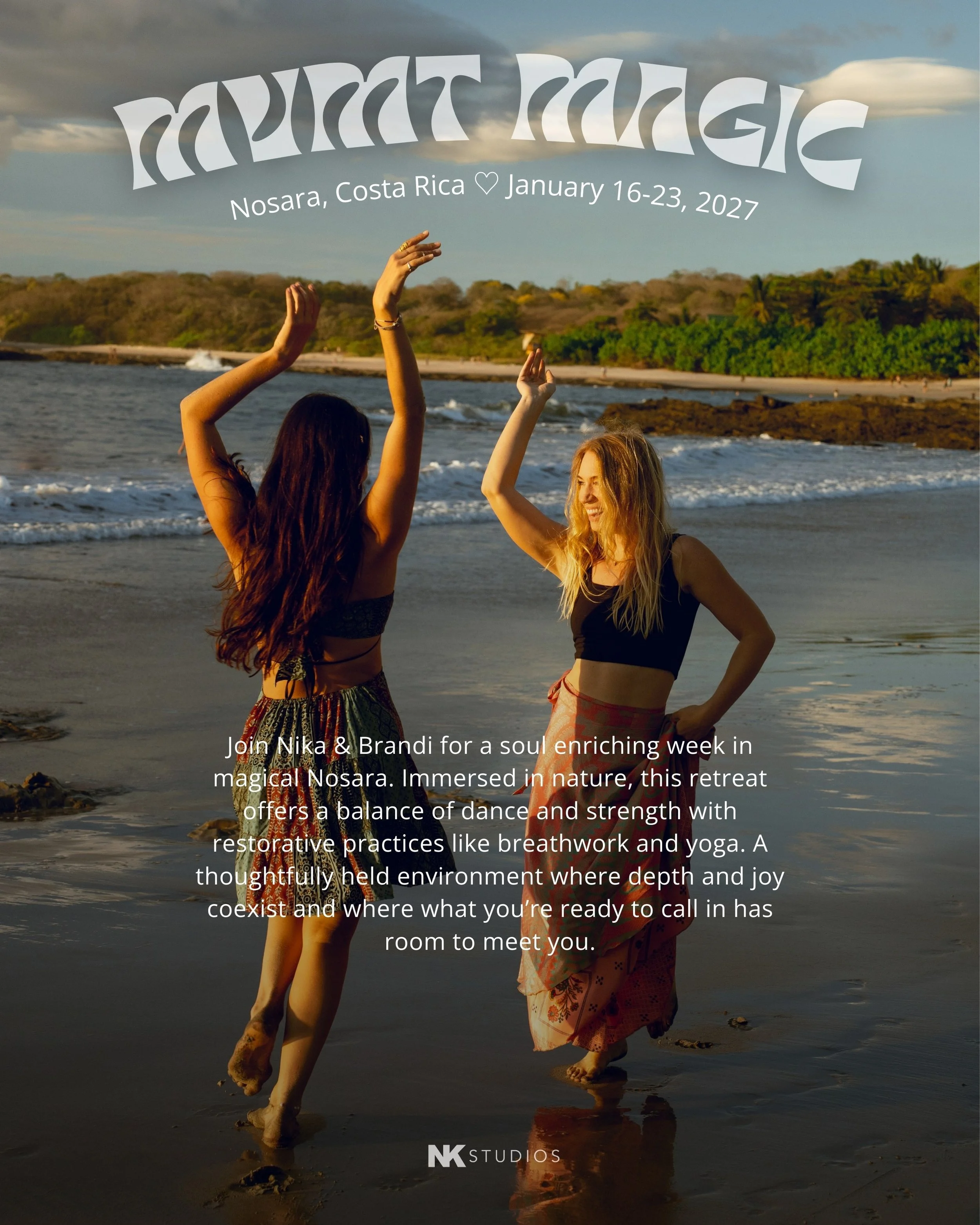 Join us for an all-inclusive retreat in beautiful Nosara, Costa Rica that combines dance, yoga, and breathwork to encourage you to move fully, slow down, and reconnect with yourself. Throughout the week, we’ll balance energizing, expansive movement with grounding, restorative practices so you can energize your spirit and clear your mind. Through a variety of movement modalities, we’ll explore effort and ease, activation and presence. Some moments will be playful and powerful. Other moments will be quiet and reflective. Both energies are central to the experience. Set in the wild & vibrant Nosara, where the jungle meets the sea, our days unfold with intention and magic. We move, sweat, laugh, release, and listen, creating space for clarity to rise naturally. This retreat is for women who crave both depth and joy, and who want to reconnect with themselves through movement, presence, and shared experience.